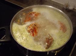 Immerger le crabe des boites dans un bouillon chaud agrémenté d'un bouquet garni pendant 10 minutes.